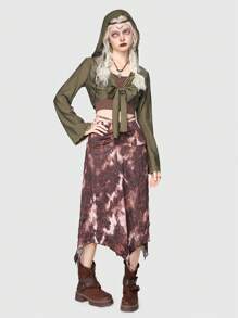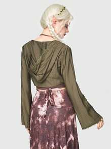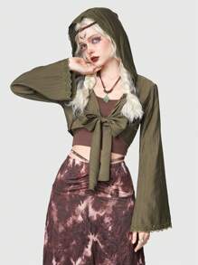 Fairycore Solid Contrast Lace Tie Front Crop Top