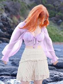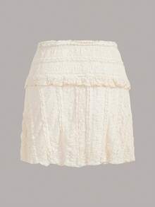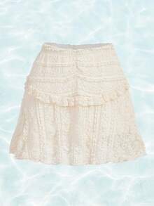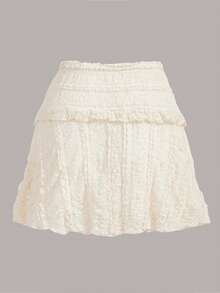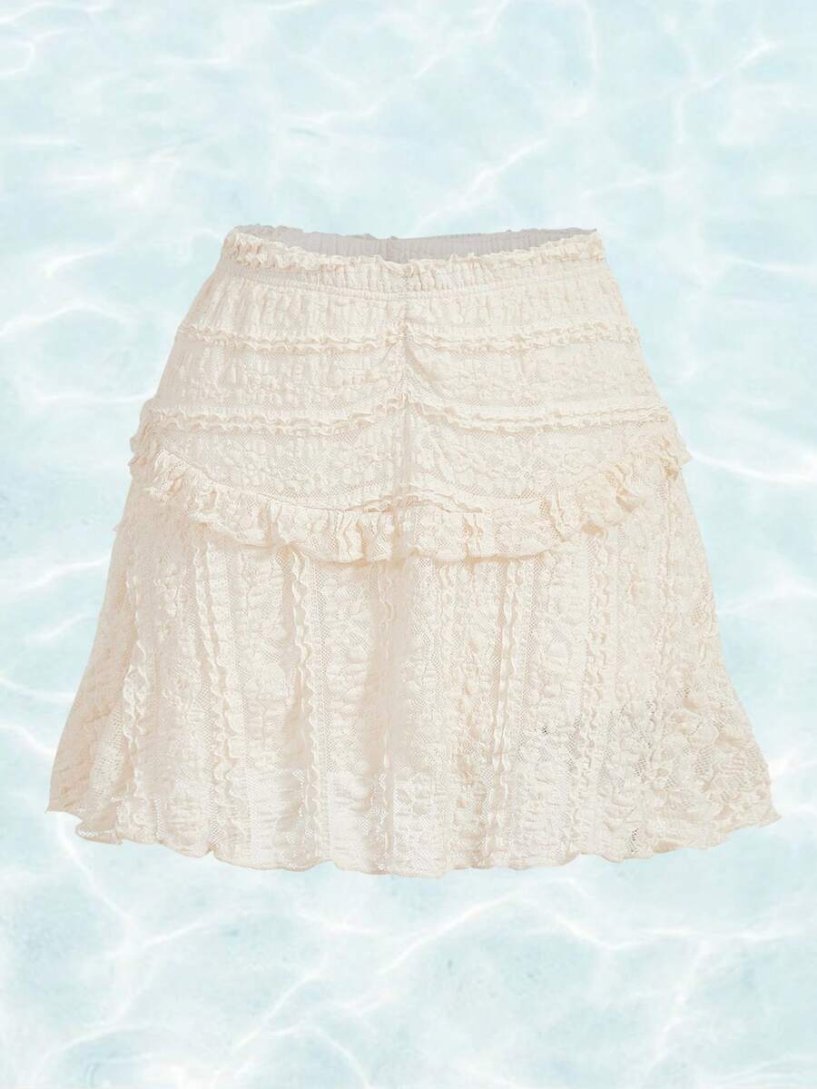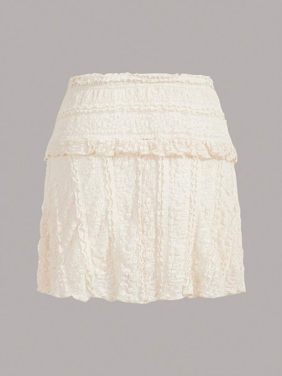 Fairycore Solid Frill Trim Lace Overlay Skirt
