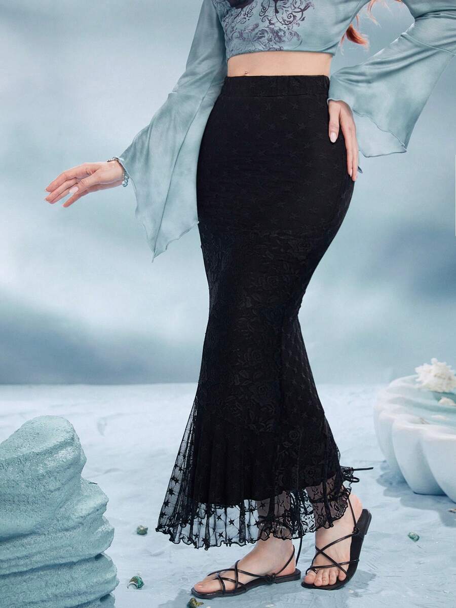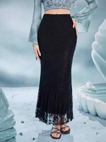 Fairycore Solid Lace Mermaid Hem Lace Overlay Skirt