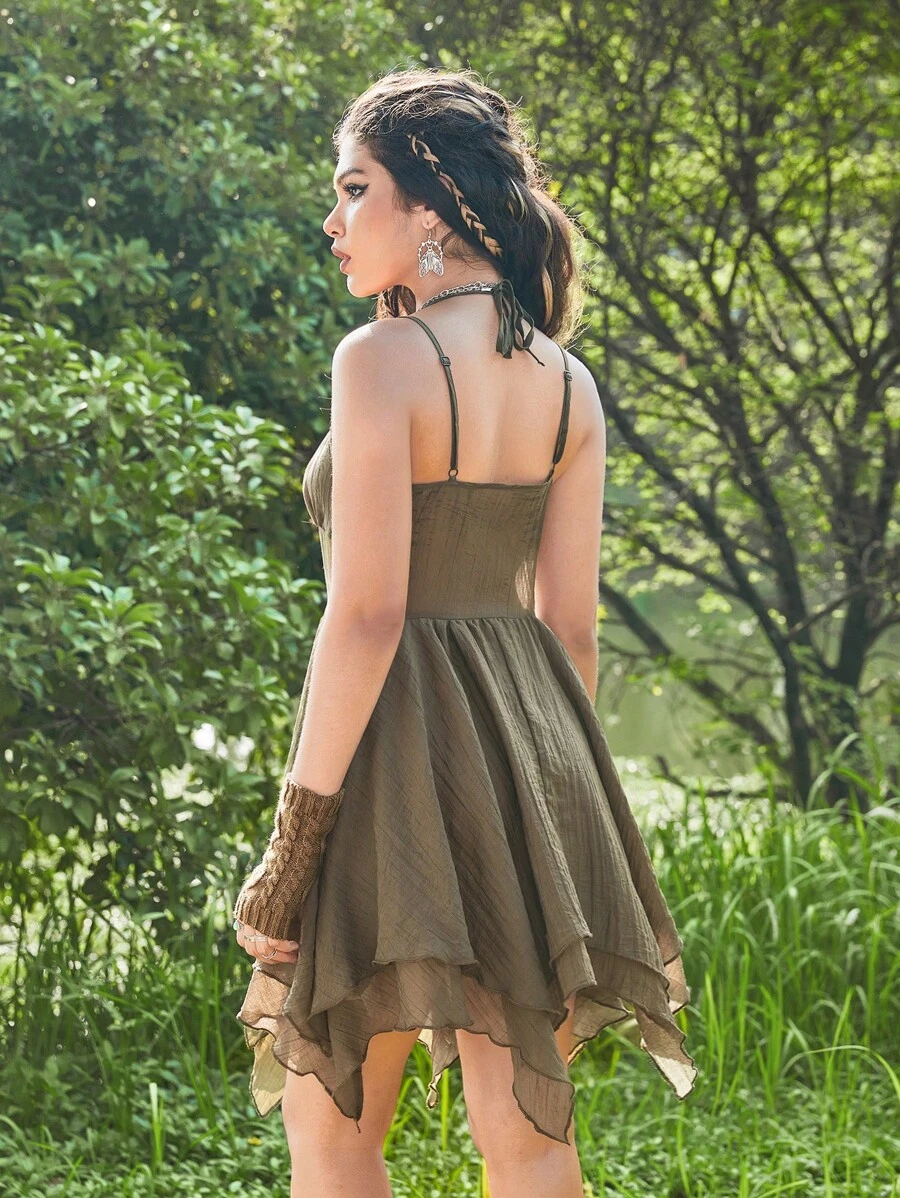 Fairycore Solid Ruched Bust Hanky Hem Cami Dress