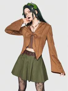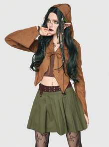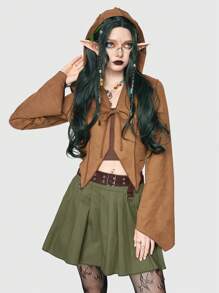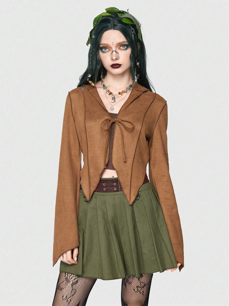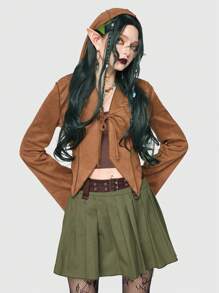Fairycore Solid Tie Front Asymmetrical Hem Crop Hooded Jacket