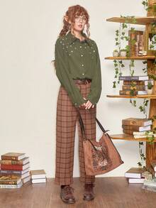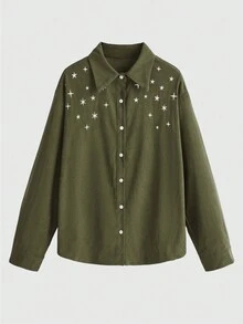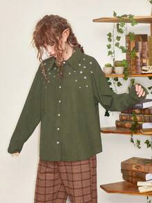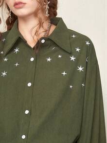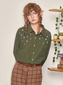 Fairycore Star Embroidery Button Front Corduroy Shirt