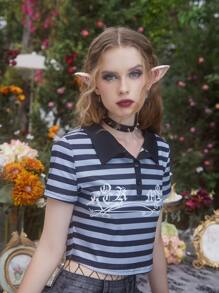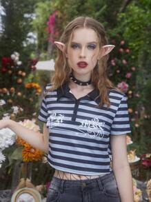 Fairycore Striped Polo Crop Tee