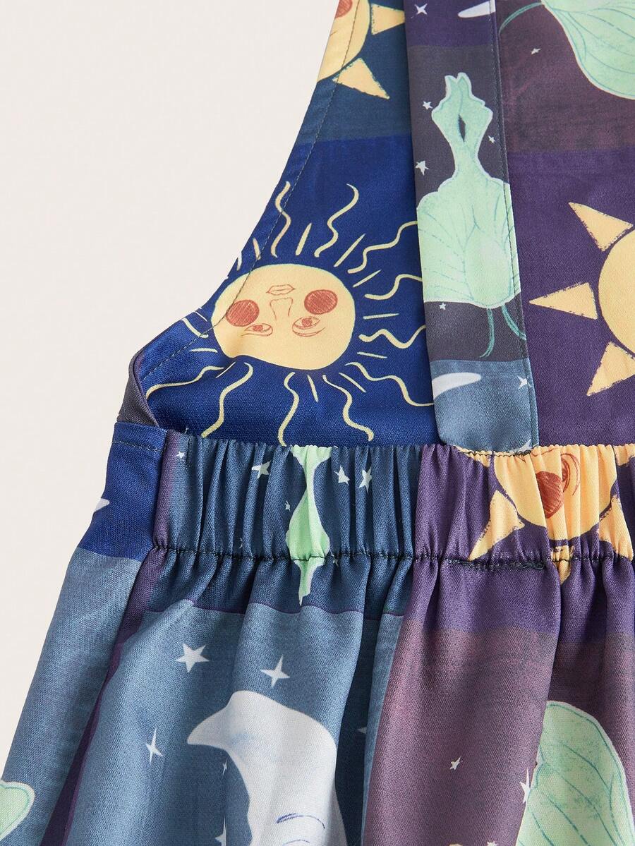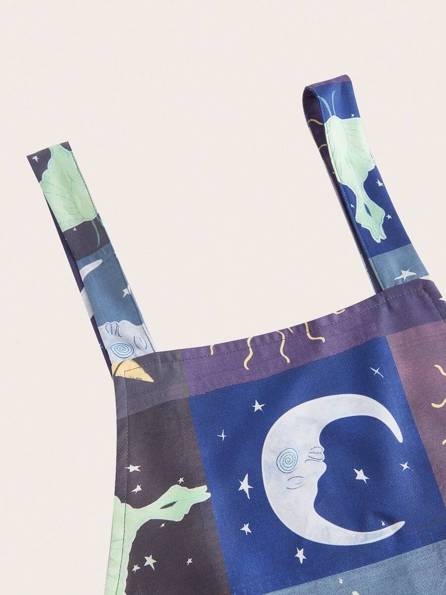 Hippie Sun & Moon Graphic Overall Jumpsuit