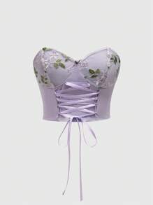 Fairycore Women Purple Strapless Lace Splice Fairy Style Top With Straps