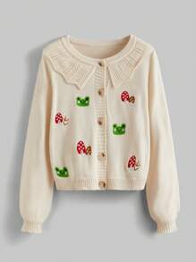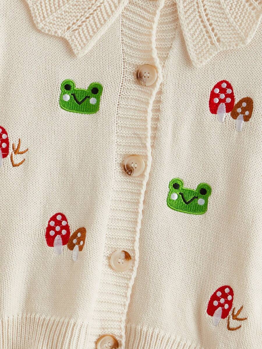 Fairycore Women'S Cartoon Embroidered Button Down Cardigan
