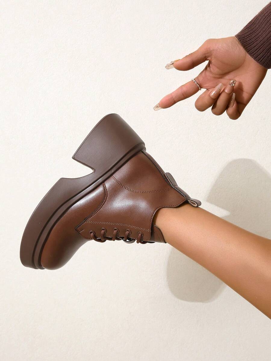 Fairycore Women Solid Lace Up Side Zipper Combat Boots, Vintage Outdoor Fashion Boots