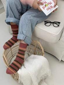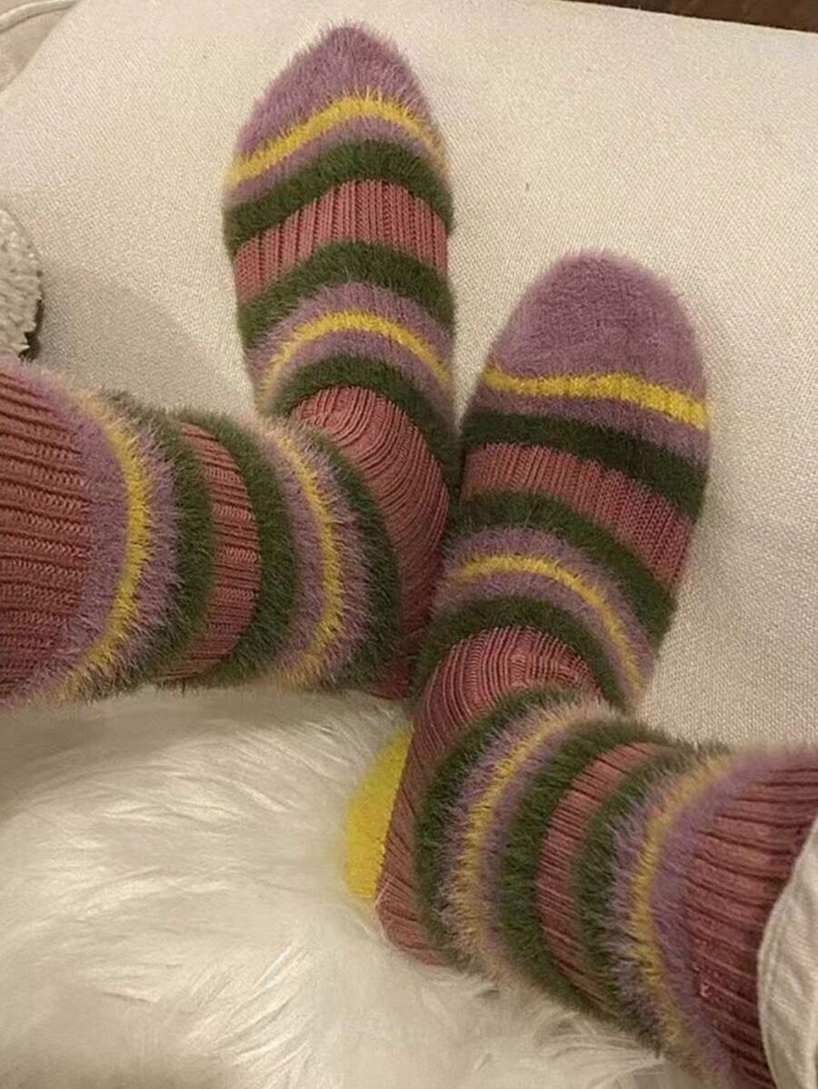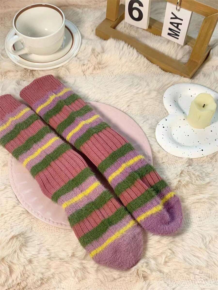 Fairycore Women's Colorful Striped Patchwork Plush Mid-calf Socks