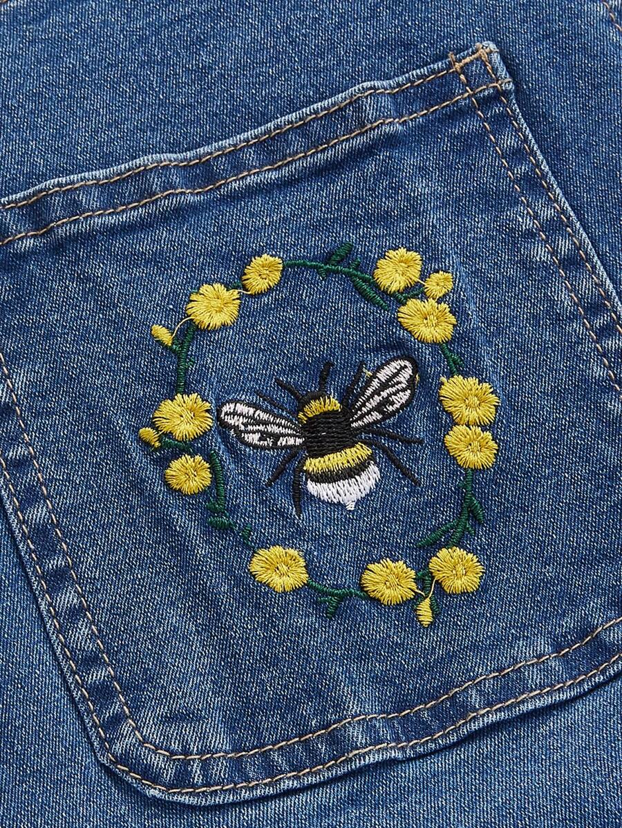 Fairycore Women's Denim Overalls Shorts With Bee Embroidery