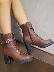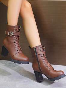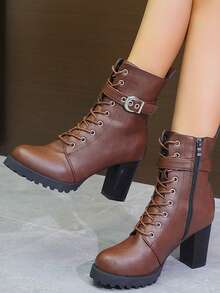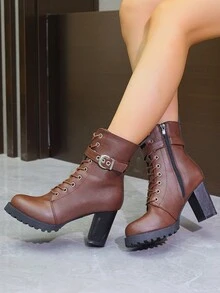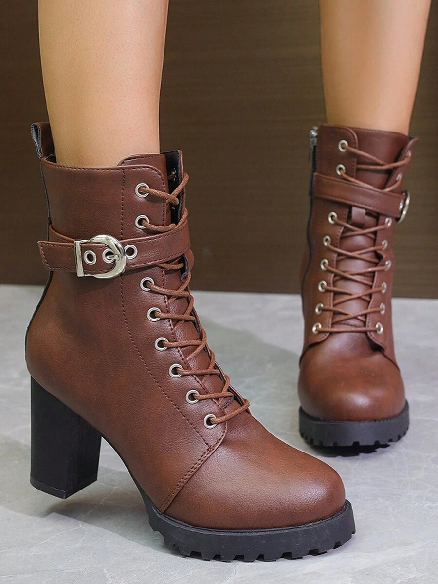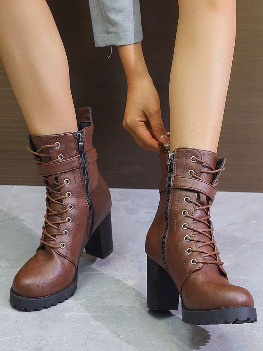 Fairycore Women's Fashionable Chunky High Heel Vintage British Style Motorcyle Ankle Boots