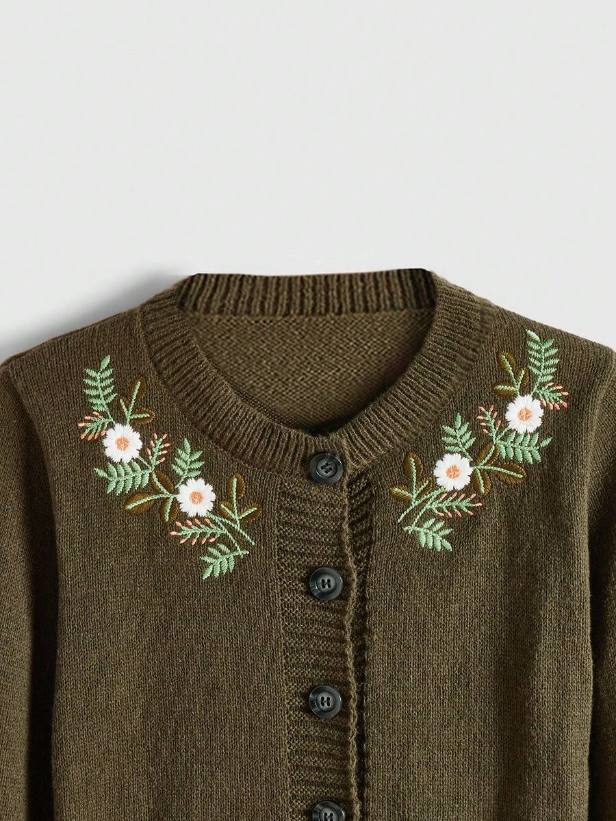 Fairycore Women's Floral Embroidery Long Sleeve Cardigan