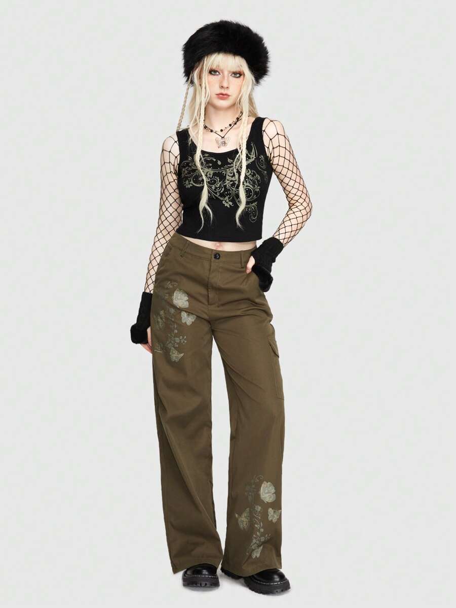 Fairycore Women's Floral Print Tank Top, No Fishnet Bra Included