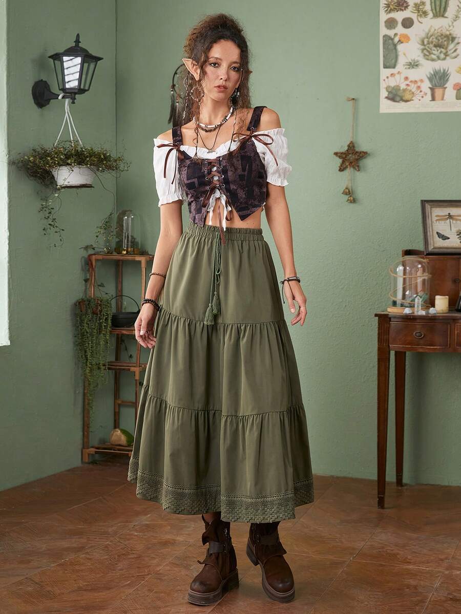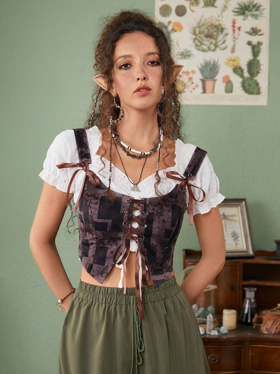 Fairycore Women's Geometric Patterned Bandeau Crop Top With Wide Straps