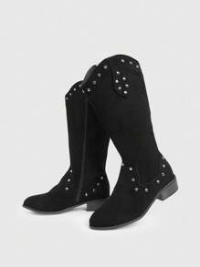 Fairycore Women's Pointed Toe V-Cut Western Boots, Chunky Heel Rivet Punk Goth Ankle Boots, Halloween