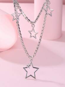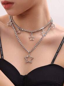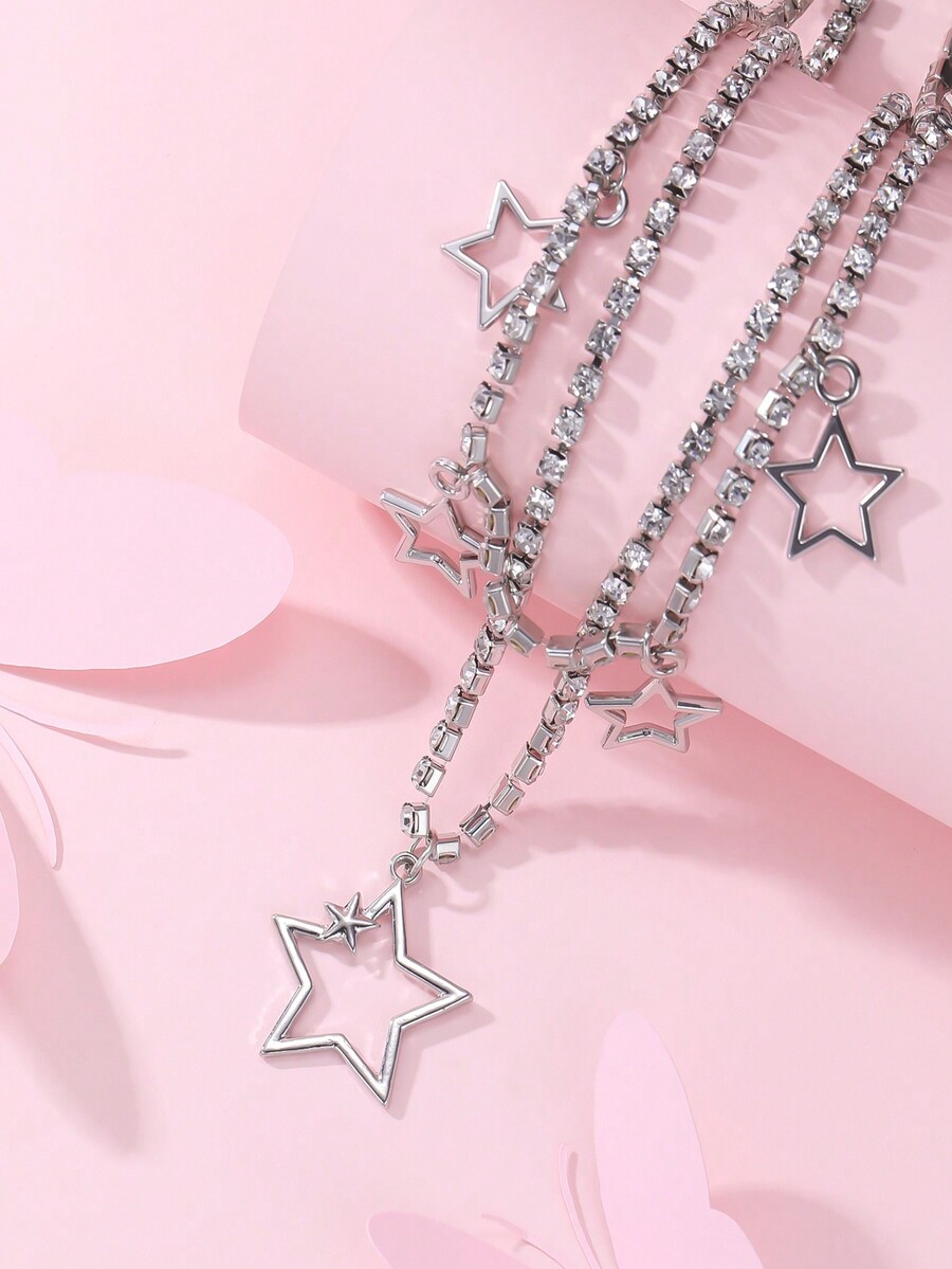 Fashion Diamond Chain Glossy Five-pointed Star Pendant Necklace 2 Pieces
