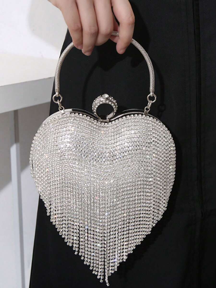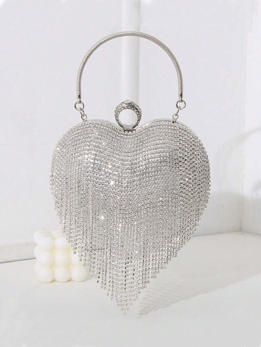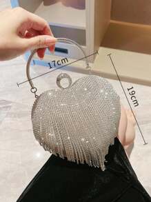 Fashionable Heart Shaped Rhinestone & Tassel Decor Evening Clutch Bag For Party