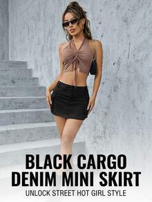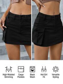 Flap Pocket Denim Skirt