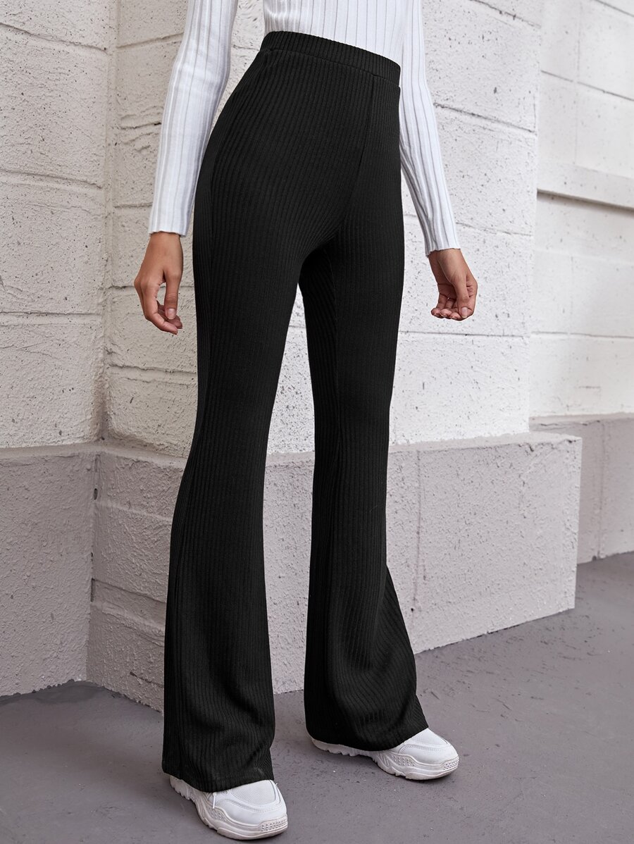 Flare Leg Rib-knit Trousers