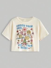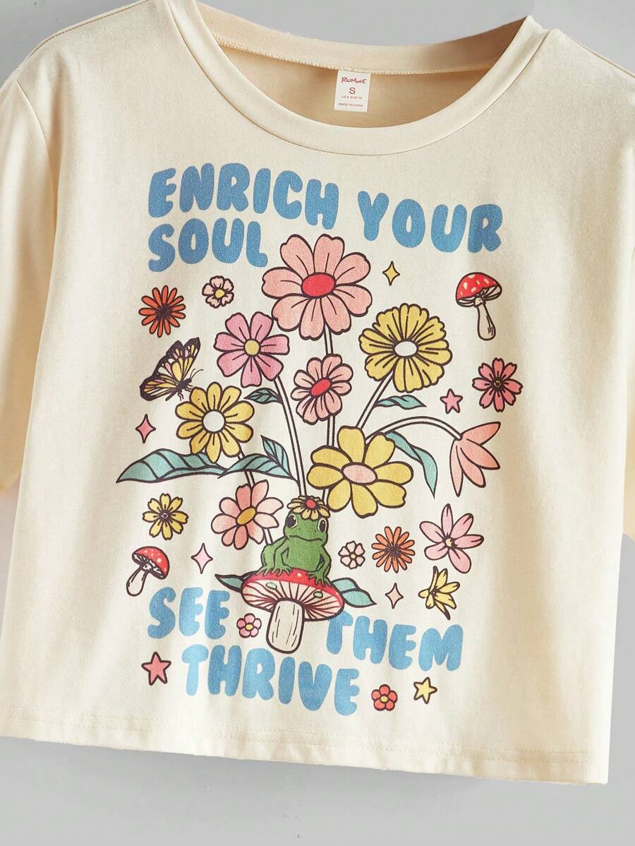 Fairycore Floral And Mushroom Pattern Short Sleeve T-shirt