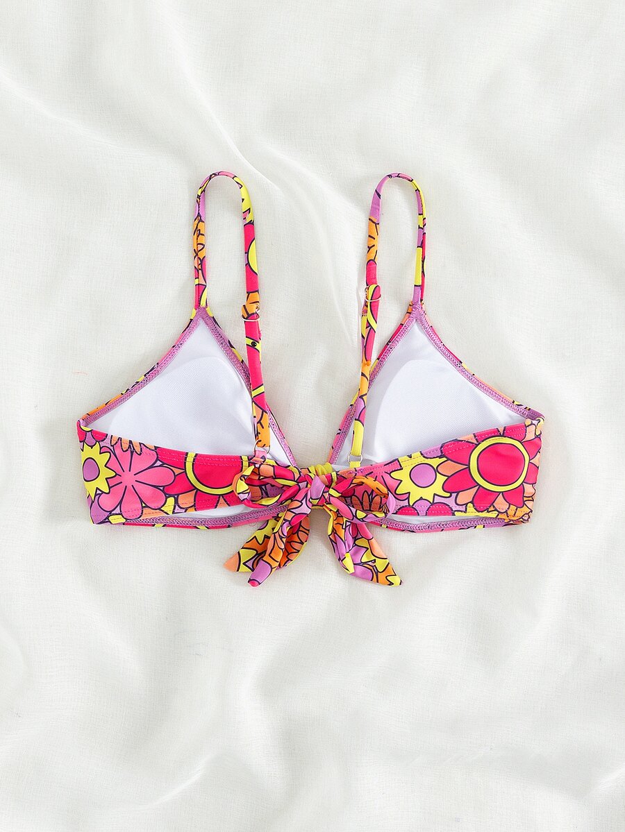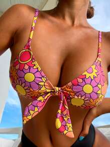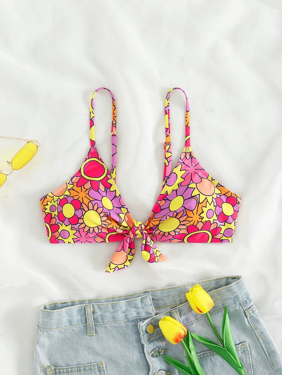 Floral Knot Front Bikini Top, For Summer Beach Vacation