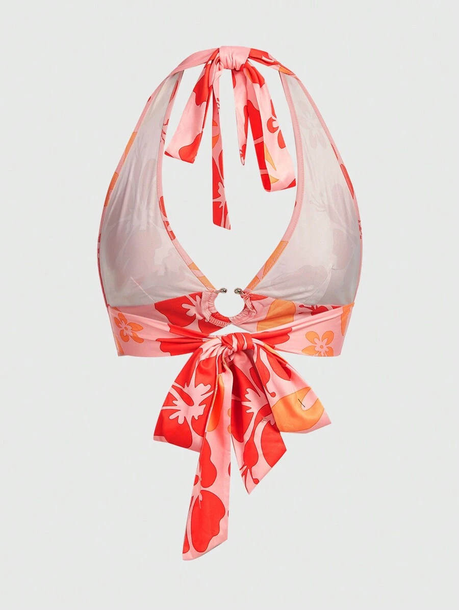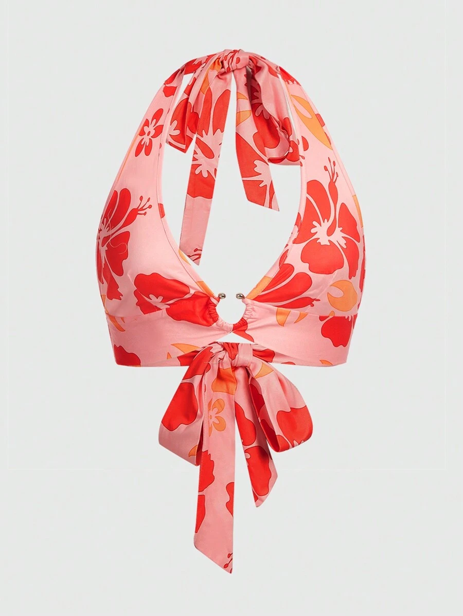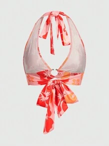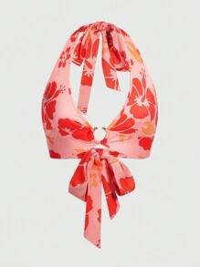 Floral Print Halter Neck Backless Tank Top, Vacation Style