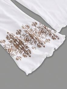 Floral Print Notched Neckline Flare Sleeve Tee