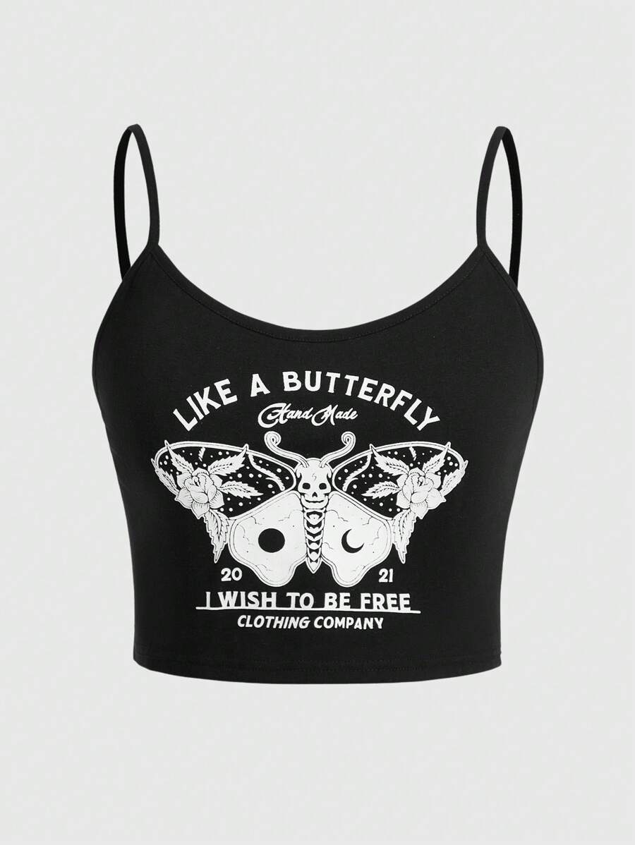 Folluther Slogan Butterfly Graphic Cami Top