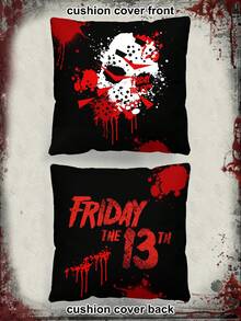Friday the 13th X ROMWE 1pc Skull & Letter Graphic Cushion Cover Without Filler,Dark Washable Decorative Square Pillowcase