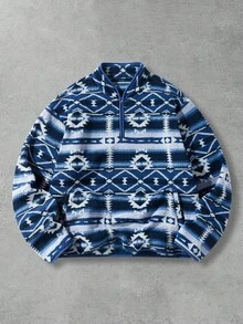 Friday the 13th X ROMWE Street Life Men's Allover Print Fleece Pullover Sweatshirt, Fall/Winter
