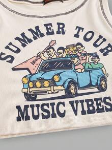 GOLDENLINE Car & Letter Graphic Top-stitching Tank Top