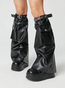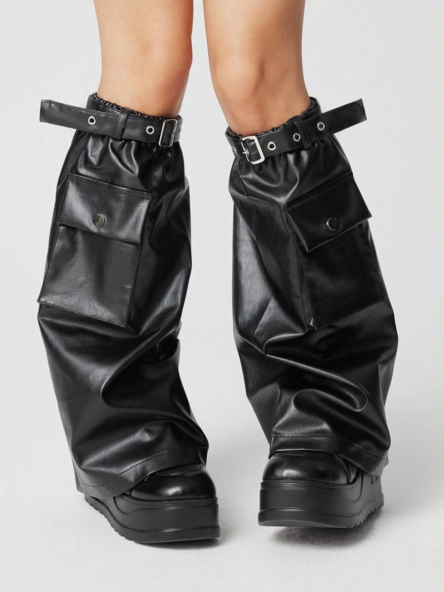 Goth 1 Pair Dark Swirled Pattern Faux Leather Leg Warmers For Women