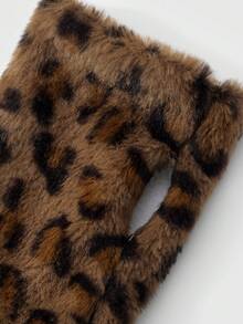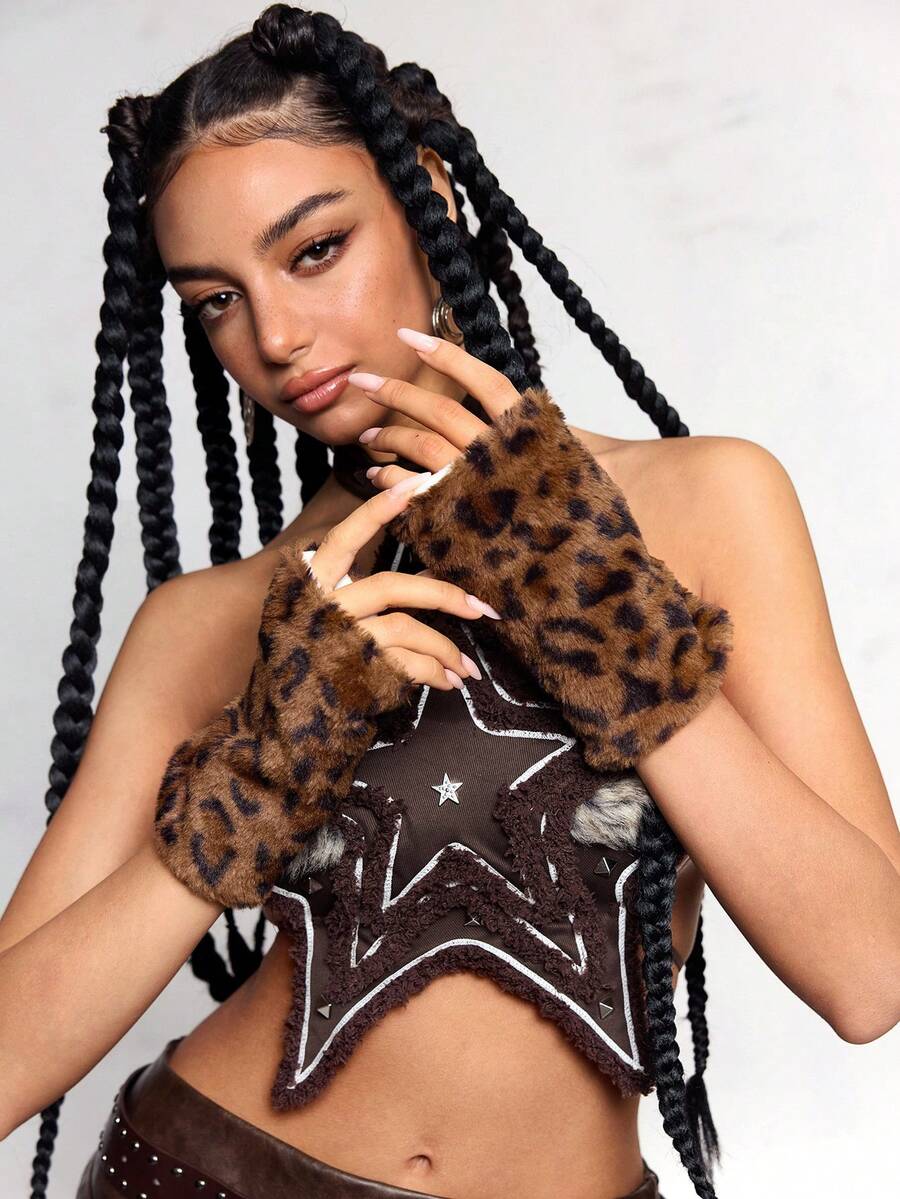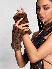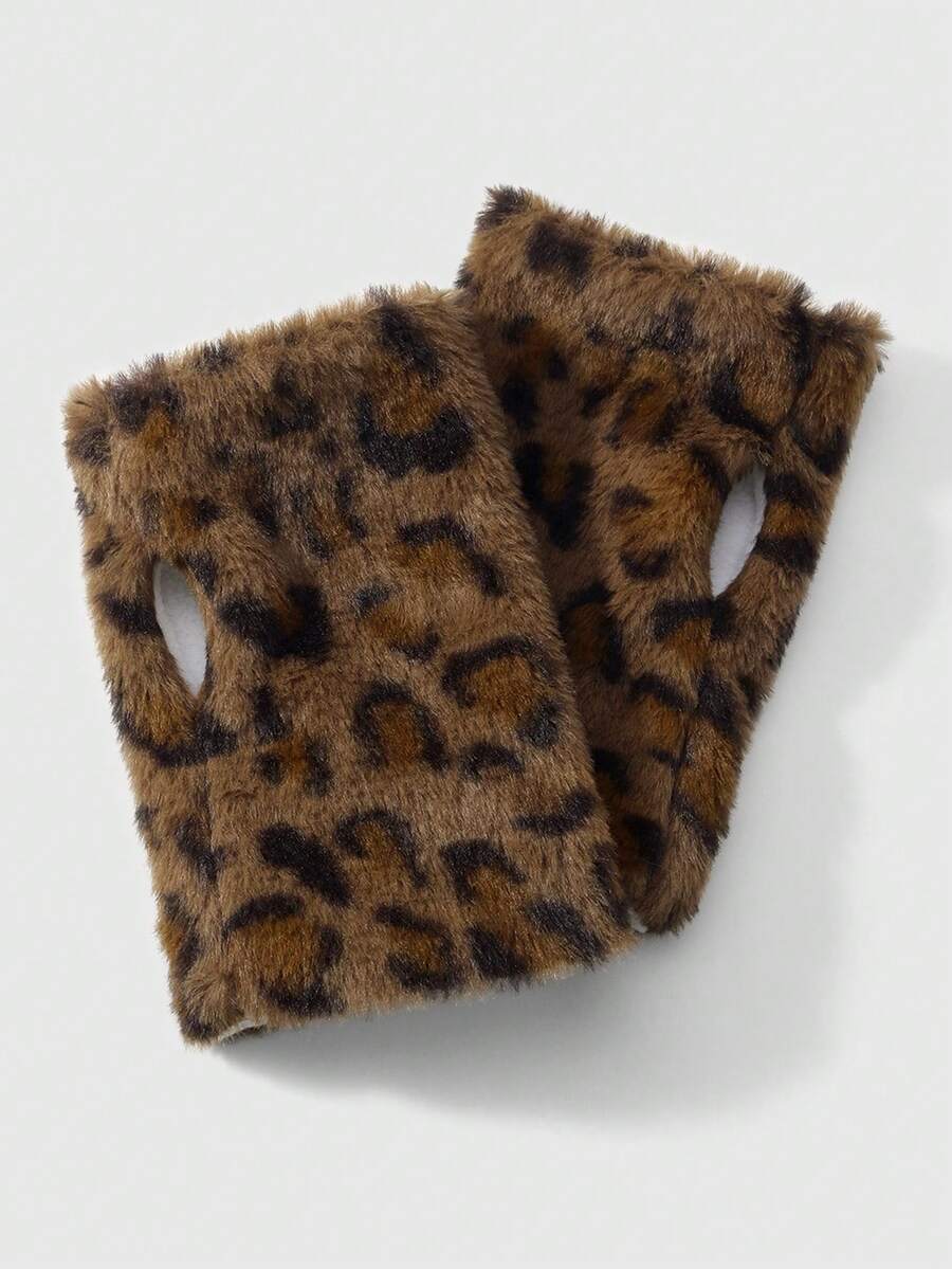 Goth 1 Pair Y2K Fashionable Unique Sweet Cool Retro High-Quality Warm Fleece Faux Rabbit Fur Leopard Tiger Print Gloves With Long Cuff, Fingerless Mittens Combo Set, Suitable For Women Daily Outfit, Holiday Gift