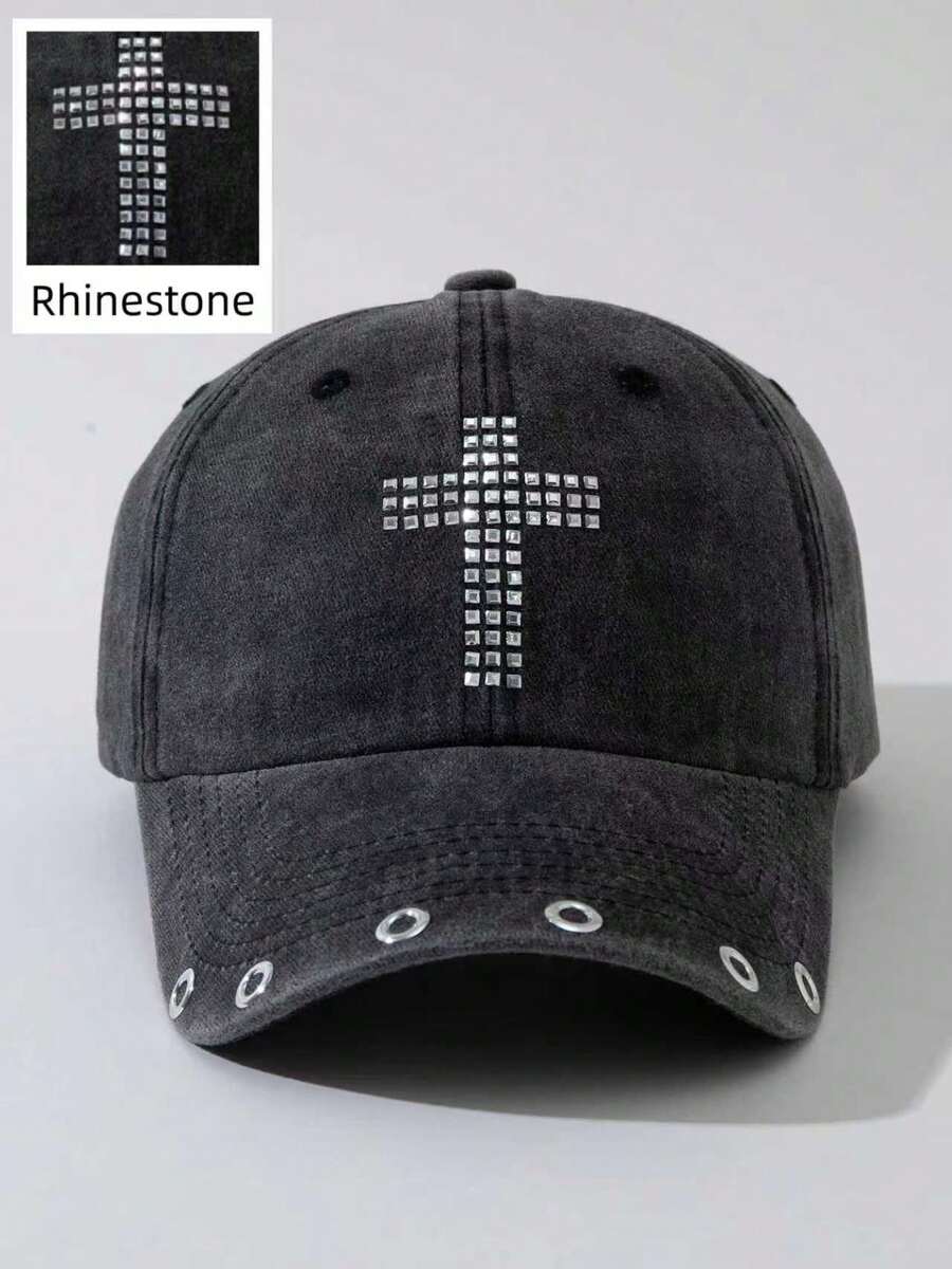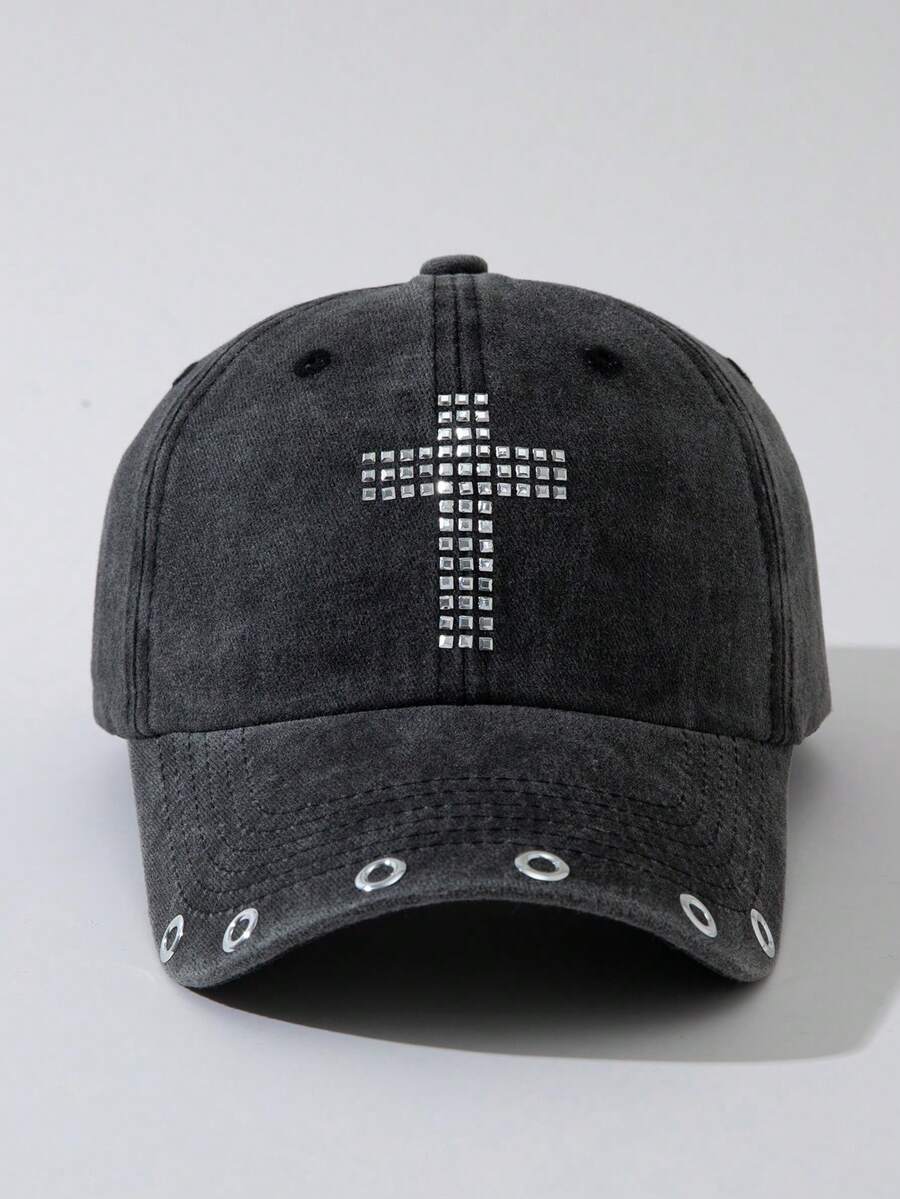 Goth 1 Women's Solid Color Cross Hot Drill Air Eye Baseball Cap Outdoor Adjustable Cap