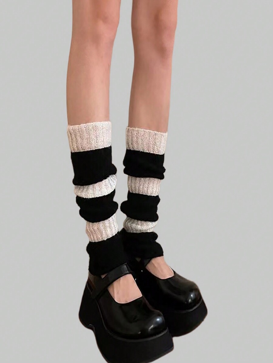 Goth 1pair Black And White Thin Black And White Leg Warmers