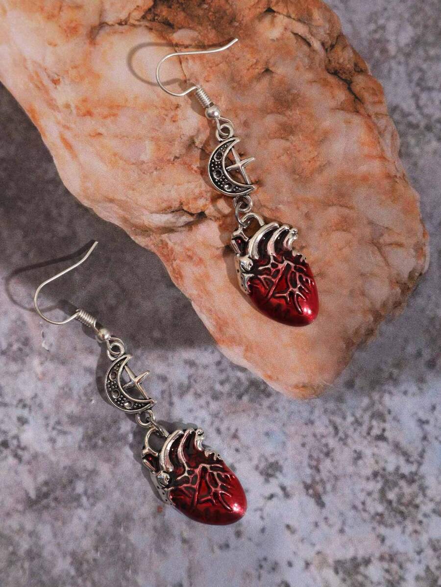 Goth 1pair Funky Zinc Alloy Moon & Heart Drop Earrings For Women For Daily Decoration Valentines,Mom,Mother,Mother's Day,Gift