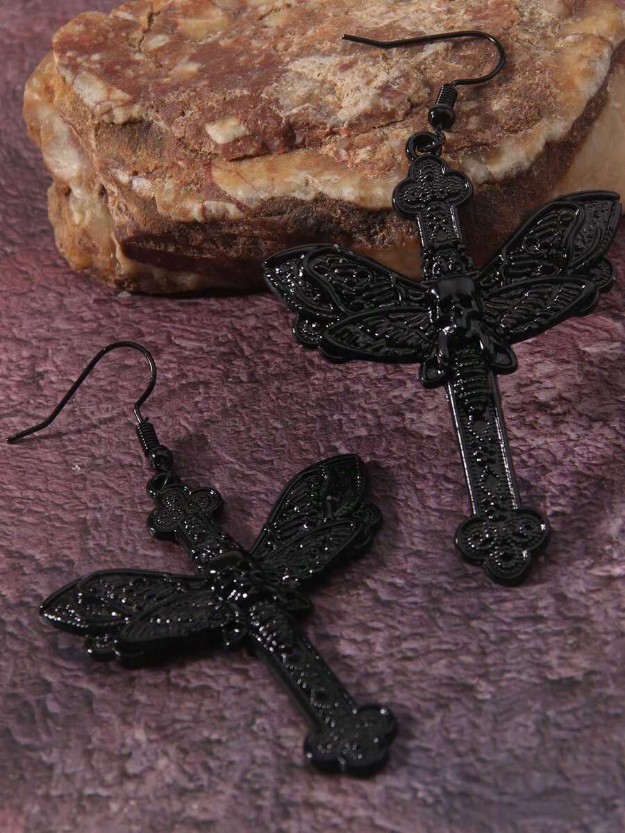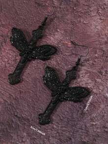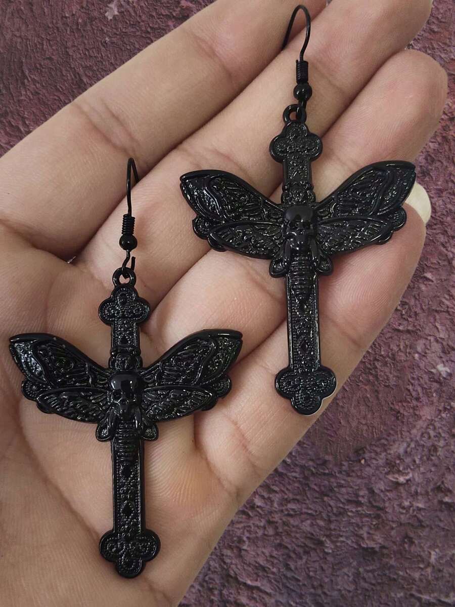 1pair Gothic Punk Cross & Moth Design Earrings