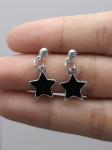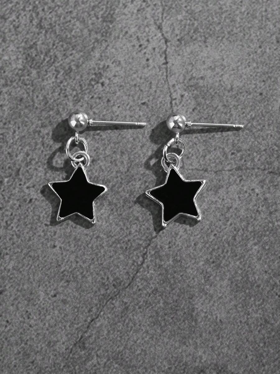 1pair Gothic Style Black Oil Drop Star Pendant Earrings In Dark, White Gold Color