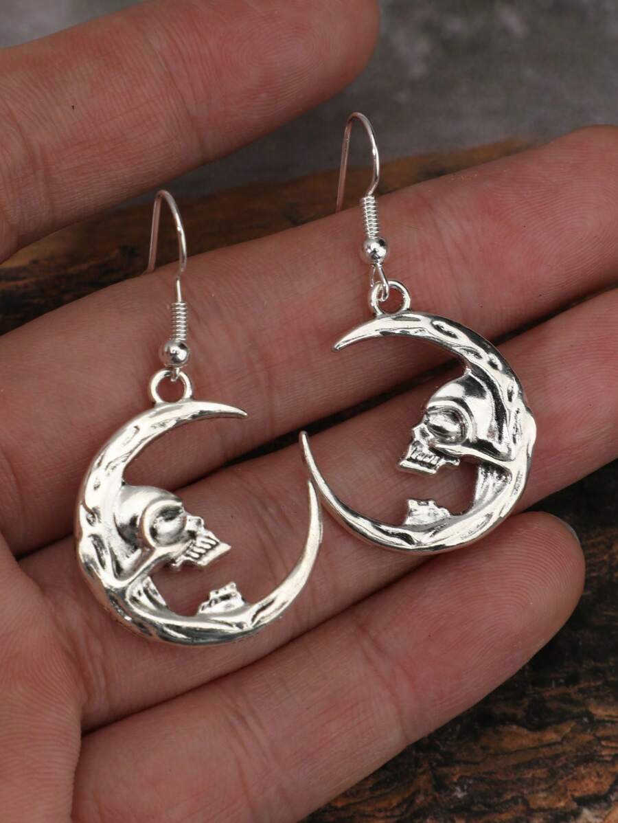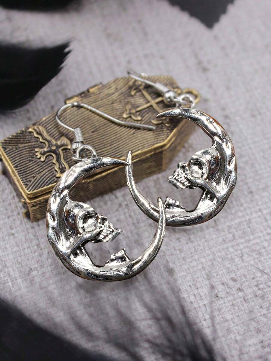 1pair Gothic Zinc Alloy Skull Decor Earrings For Women For Daily Decoration