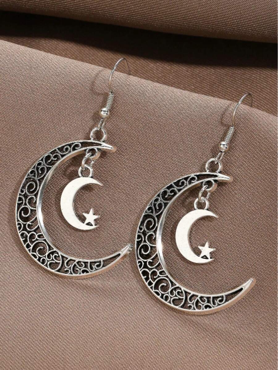 Goth 1pair Vintage Moon & Star Dangle Earrings