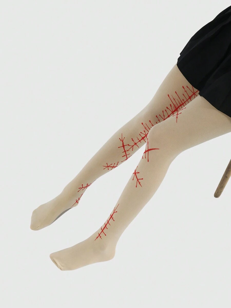 Goth 1pair Women Blood Pattern Tights For Halloween