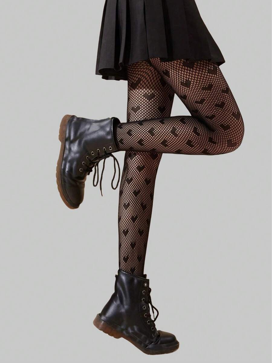 Goth 1pair Women Heart Pattern Fishnet Tights