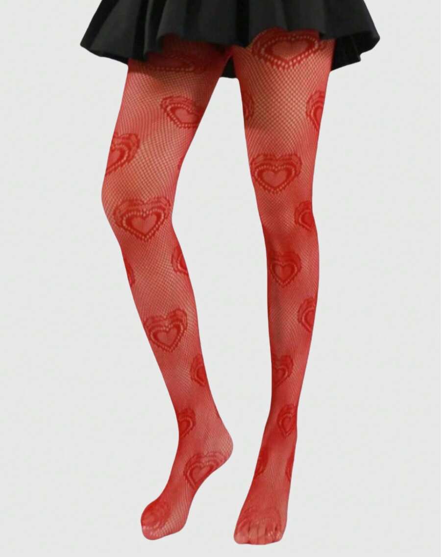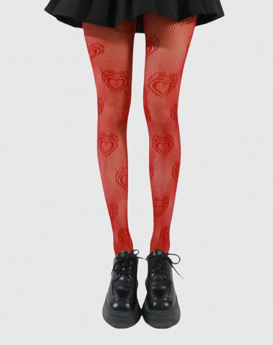 Goth 1pair Women Heart Pattern Fishnet Tights