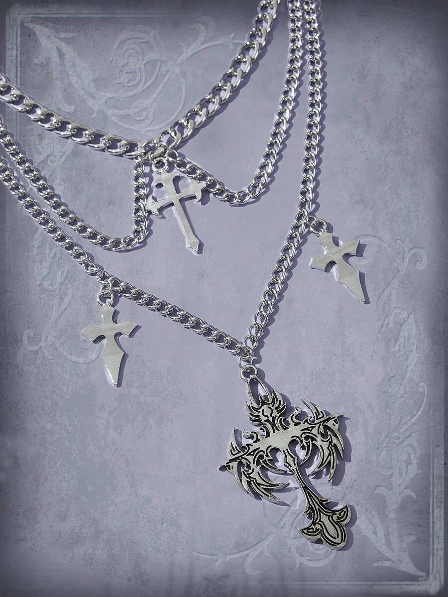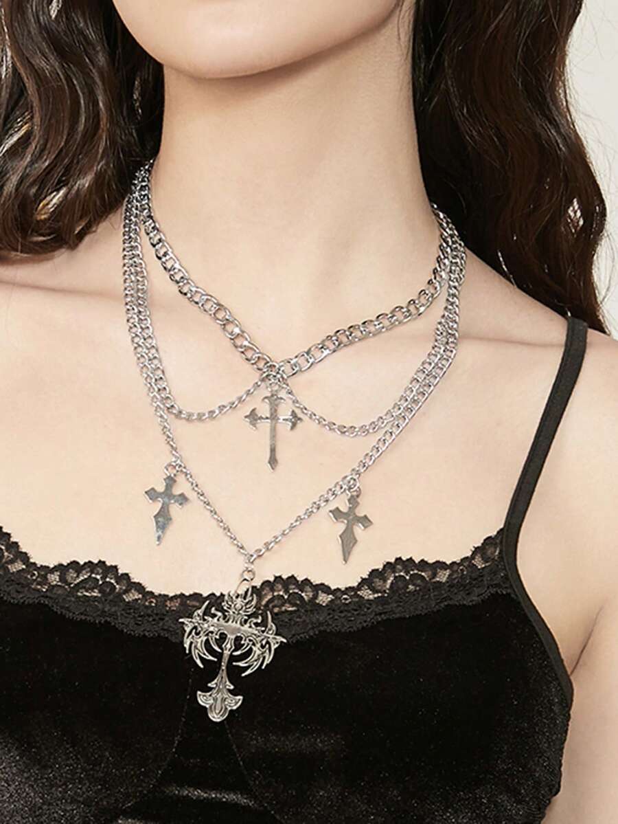 Goth 1pc Fashion Cross Decor Chain Pendant Necklace