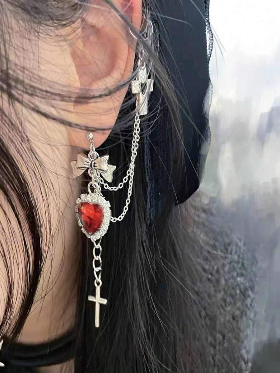 Goth 1pc Fashion Zinc Alloy Heart & Cross Decor Earring For Women For Daily Decoration