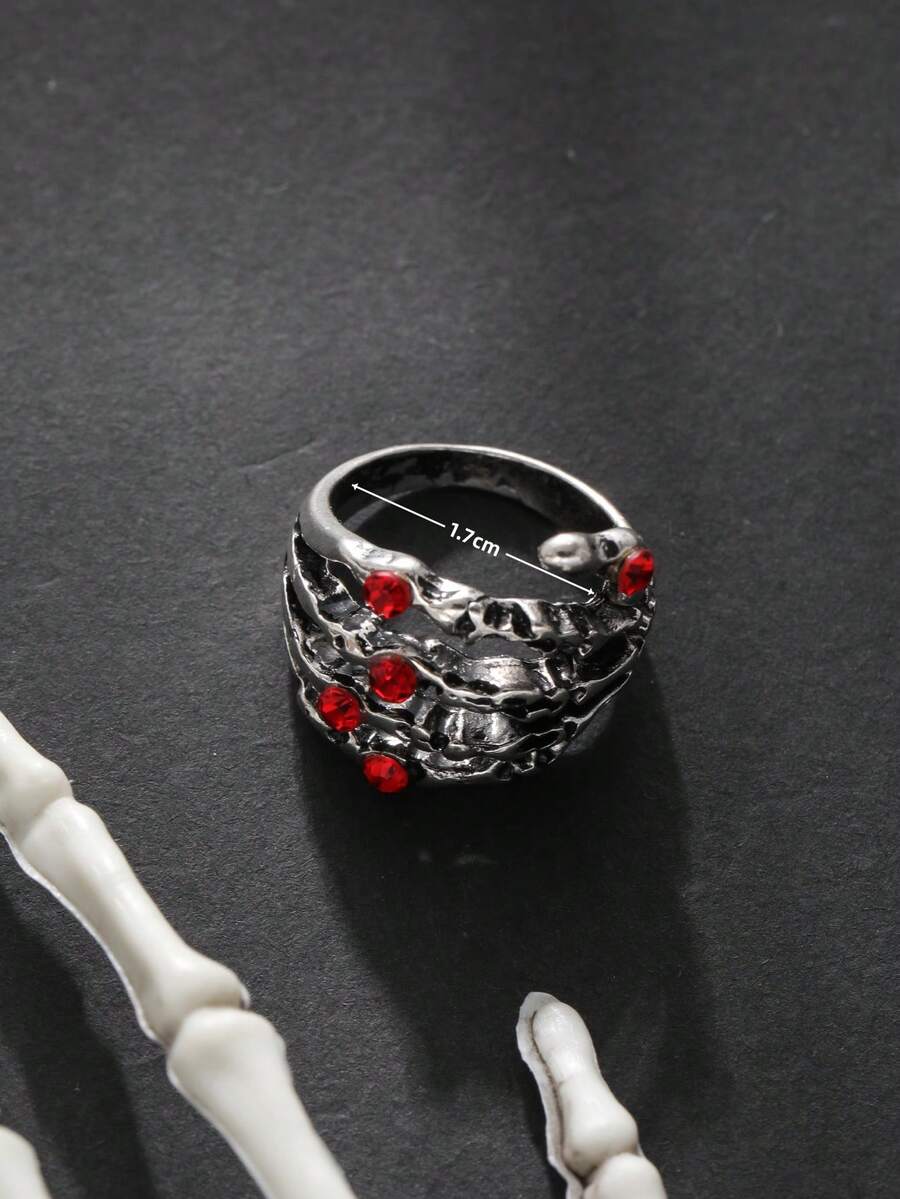 1pc Gothic Dark Skull Shaped Rhinestone Decor Metal Men Ring