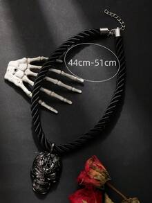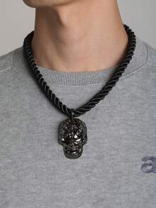 1pc Gothic Dark Style Exaggerated Thick Rope Skull Pendant Necklace For Men