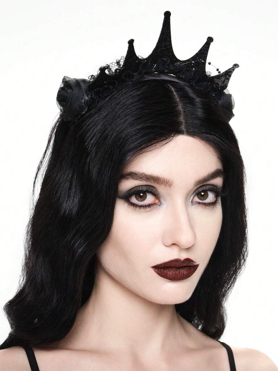Goth 1pc Graduation Party Dark Black Rose Bead Crown Headband