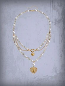 Goth 1pc Heart Design Butterfly Decor Pendant Necklace