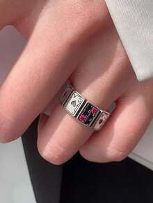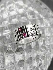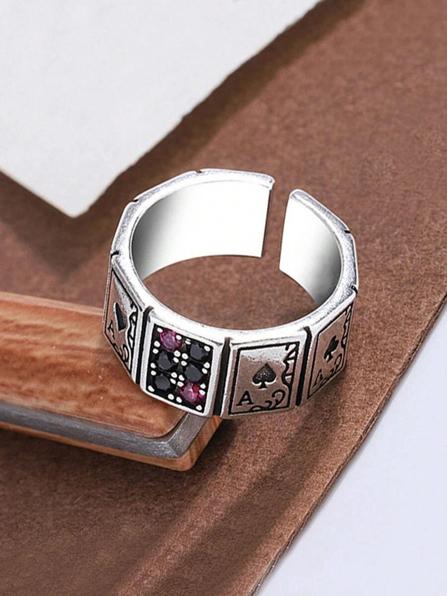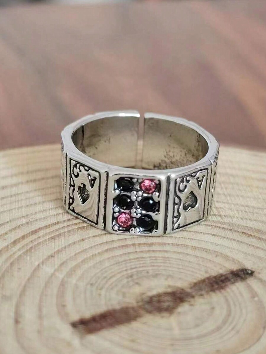Goth 1pc Playing Card & Cubic Zirconia Cuff Ring
