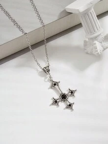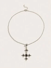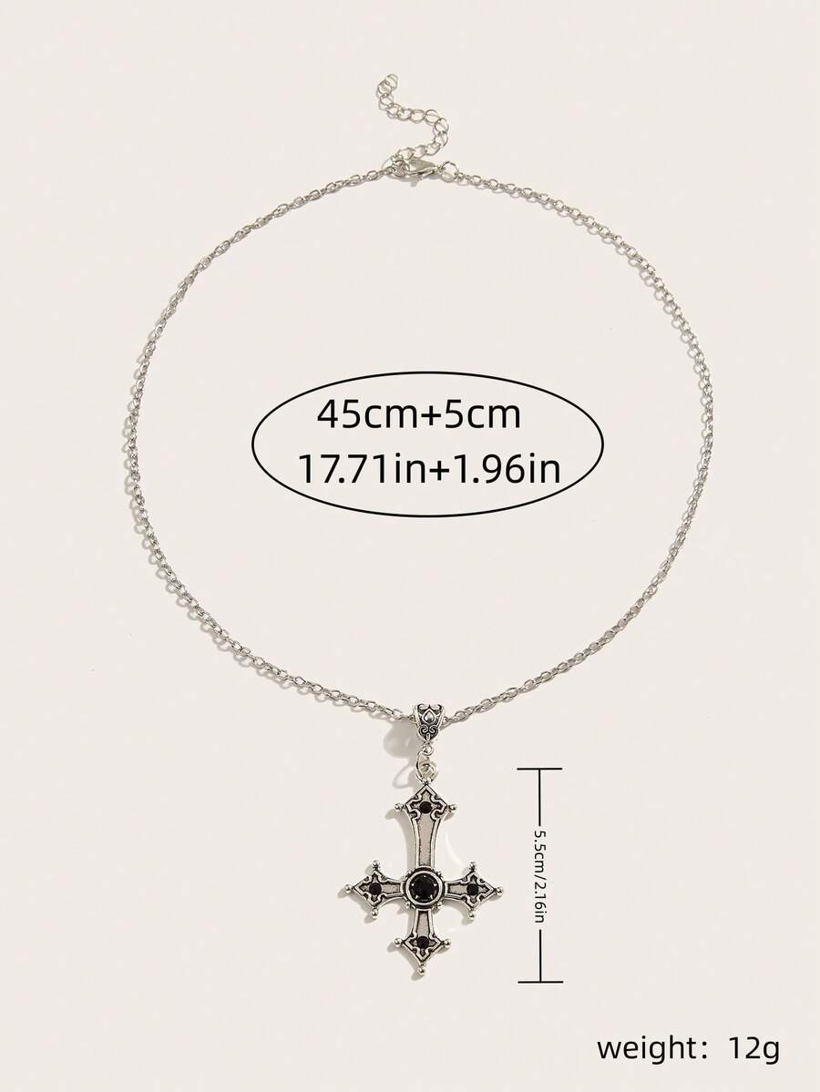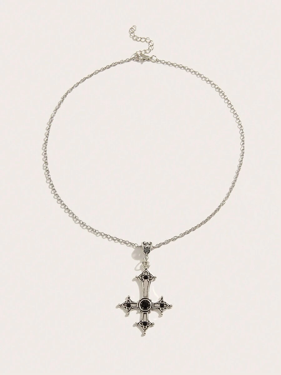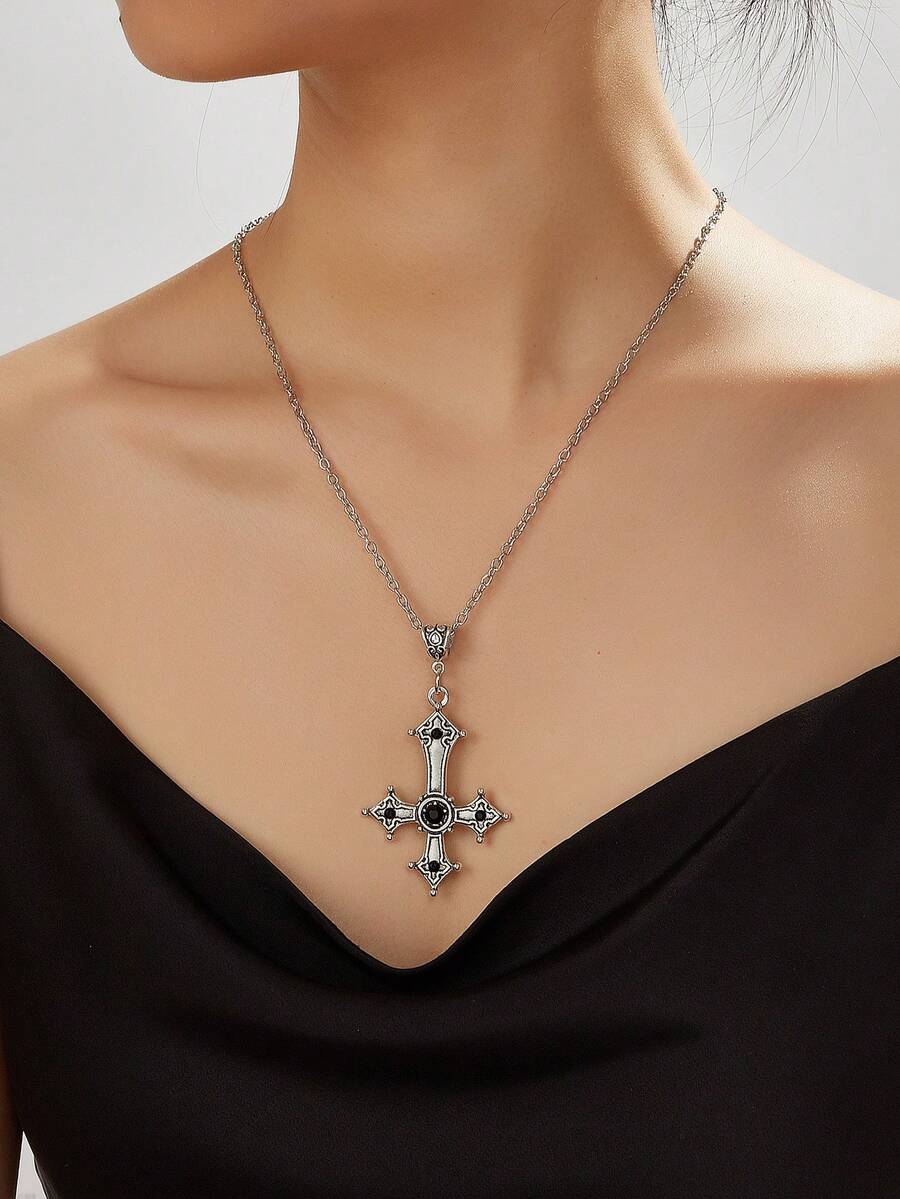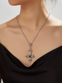 Goth 1pc Vintage Cross Pendant Necklace With Rhinestone Embellishment